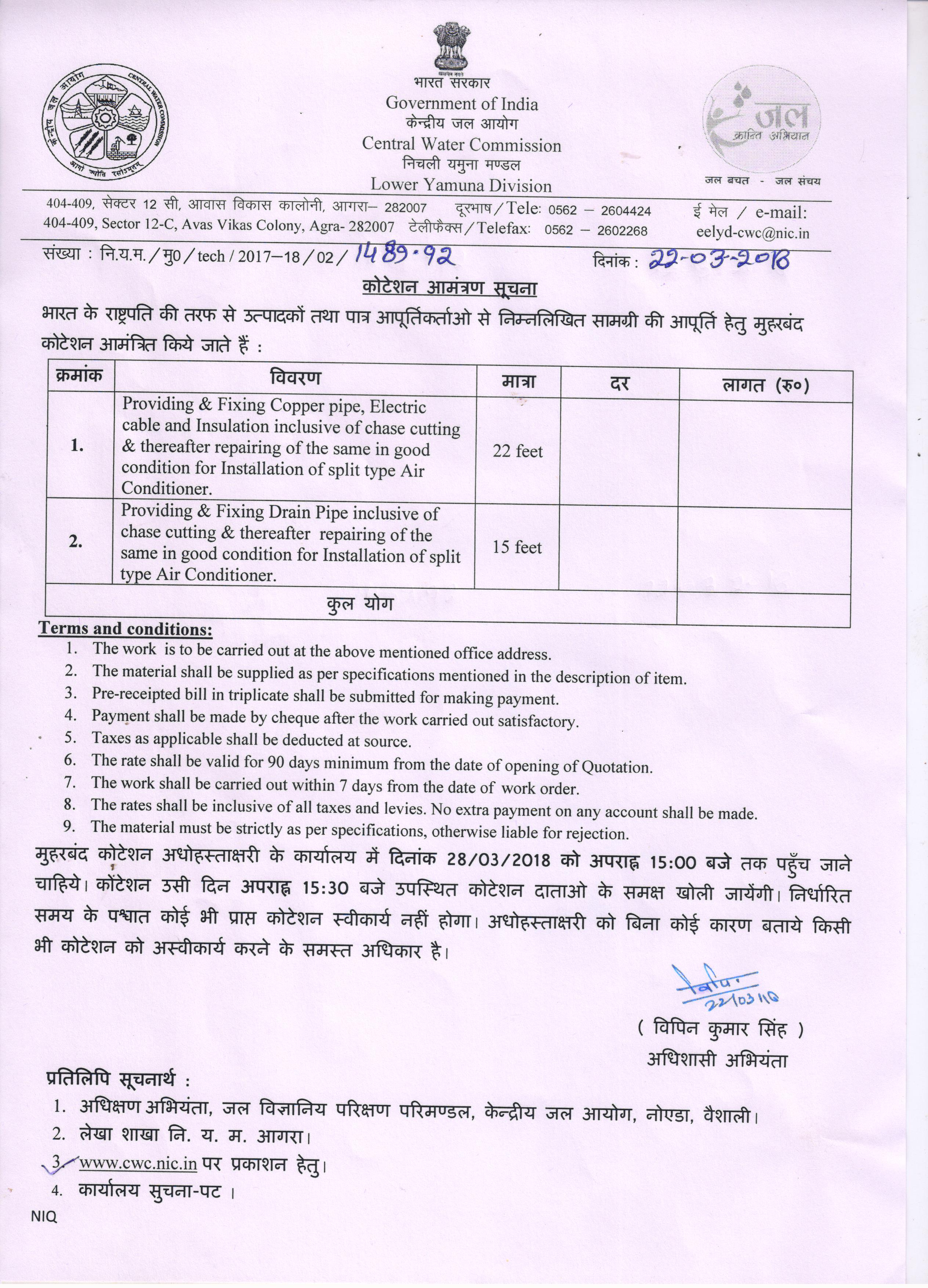 कम यमुन डिवीजन, आगरा के तहत विभिन्न राइवर्स पर हाइड्रोलॉजिकल निरीक्षण के लिए समर्थन सेवाओं की भर्ती के लिए कॉरिजेंडम 1