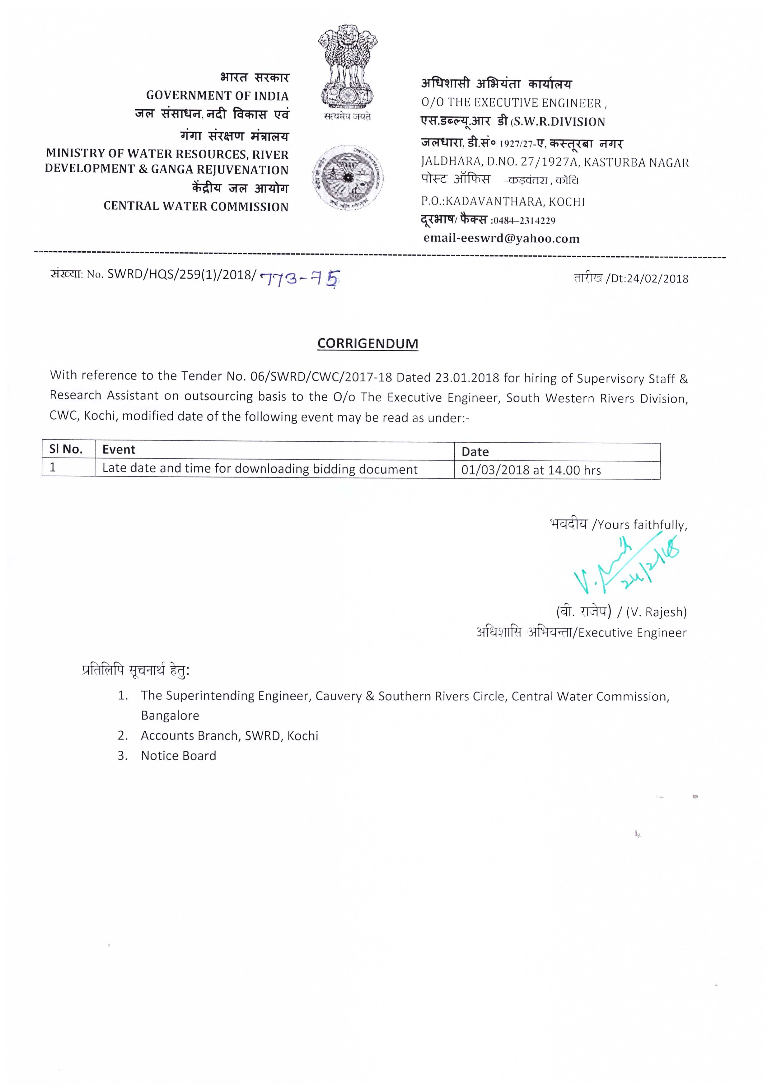 | 208 | 07/SWRD/CWC/ 2017-18 Dated 25/01/2018 |