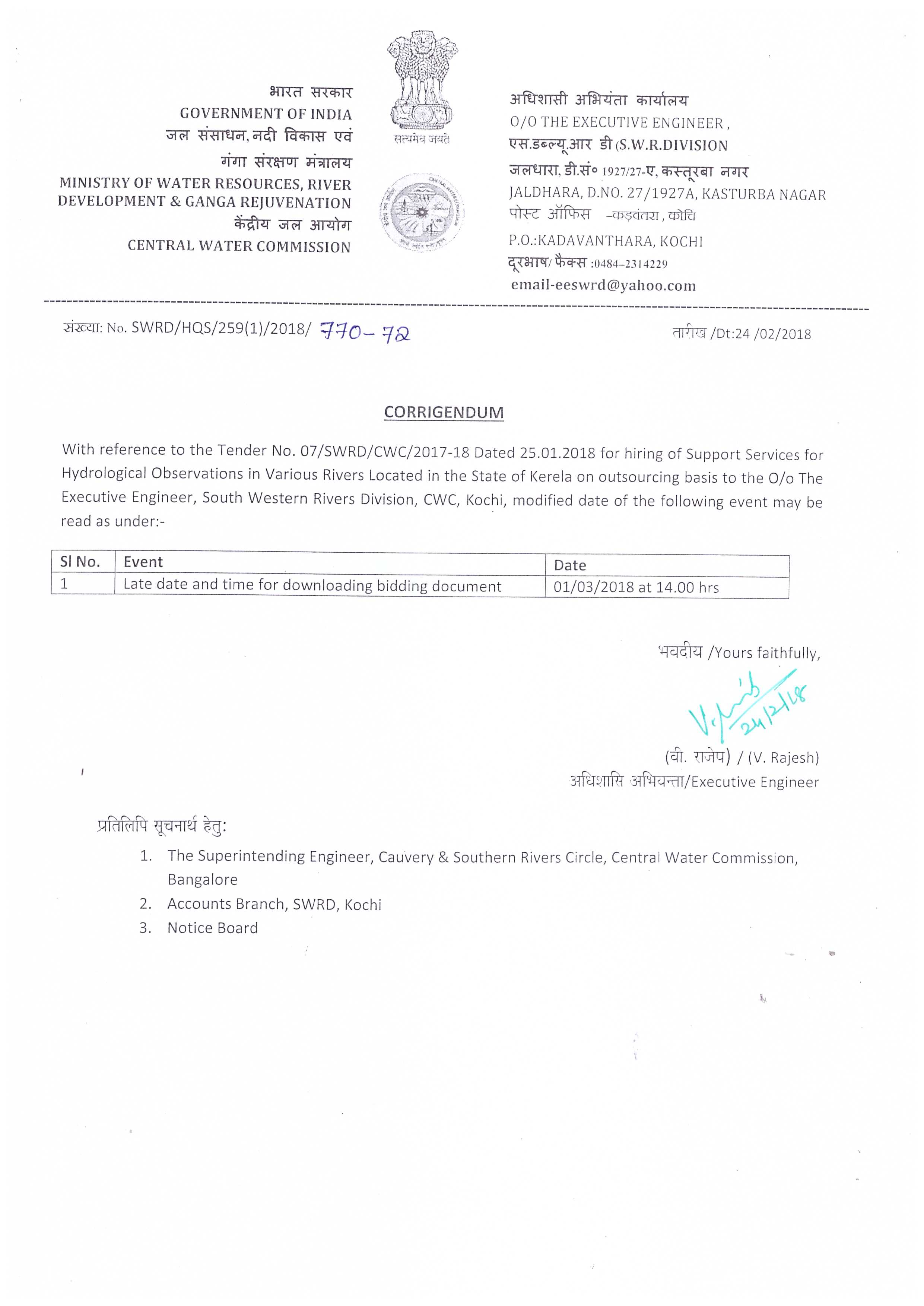 संशोधित निविदा घटनाओं के लिए शुद्धिपत्र।